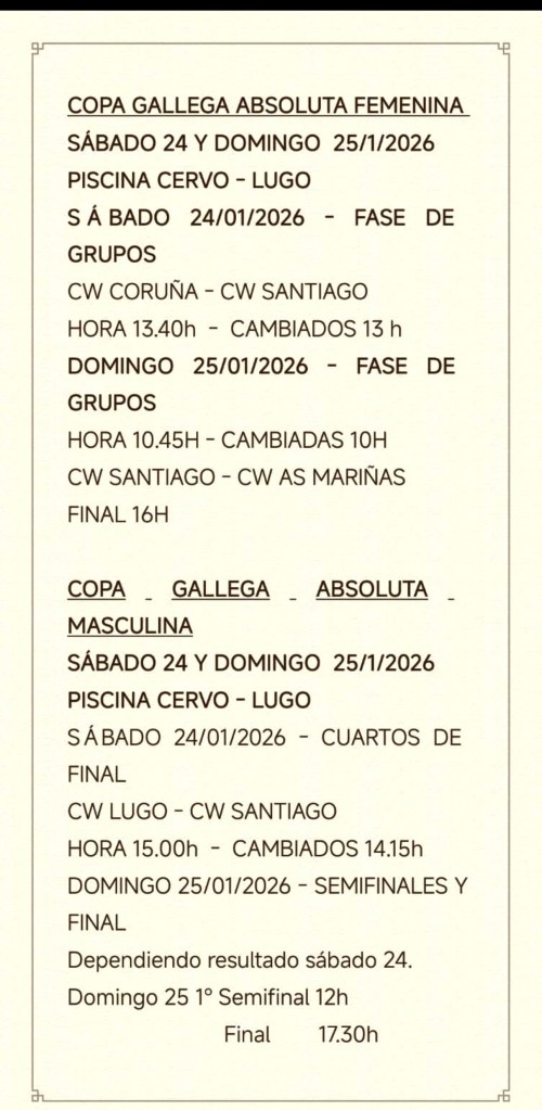 Copa Galega Absoluta – FEMININA E MASCULINA – Screenshot Compartir: Compartir en Facebook (Se abre en una ventana nueva) Facebook Imprimir (Se abre en una ventana nueva) Imprimir Share on Telegram (Se abre en una ventana nueva) Telegram Share on WhatsApp (Se abre en una ventana nueva) WhatsApp Share on X (Se abre en una ventana nueva) X Máis Share on X (Se abre en una ventana nueva) X Gústame Cargando... Relacionado Publicado por Club Waterpolo Santiago Blog oficial do Club Waterpolo Santiago Ver todos os artigos de Club Waterpolo Santiago